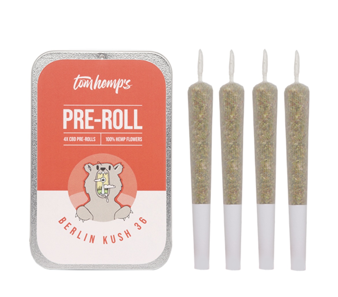 Mit dem Tom Hemp’s CBD-Pre-Roll 4er Set ist alles schon erledigt. Hier bekommst du 4 x 0,65 g allerfeinstes indoor CBD, das heißt pure CBD-Blüte, kein Trimm, keine Blätter, keine Stängel, sondern nur die Cream of the Crop in prallgefüllten Cones deines Tom Hemp’s CBD Lieblingsstrains Berlin Kush 36.